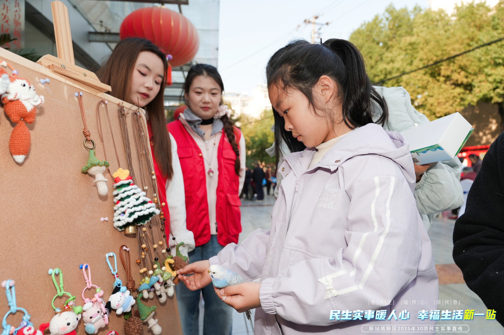 爱心义卖区内,手工钩织品、闲置书籍等物品琳琅满目,居民们在精心挑选中传递着互助与善意;
